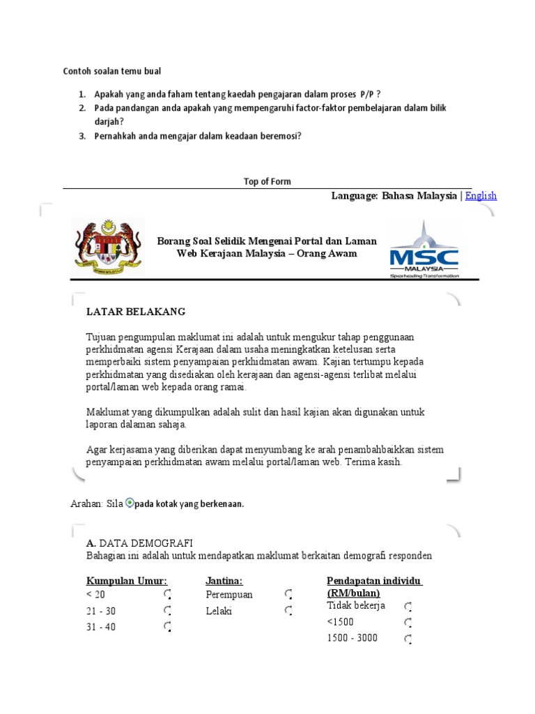 Contoh Borang Soal Selidik / Temu Bual Tugasan Geografi via www.bumigemilang.com